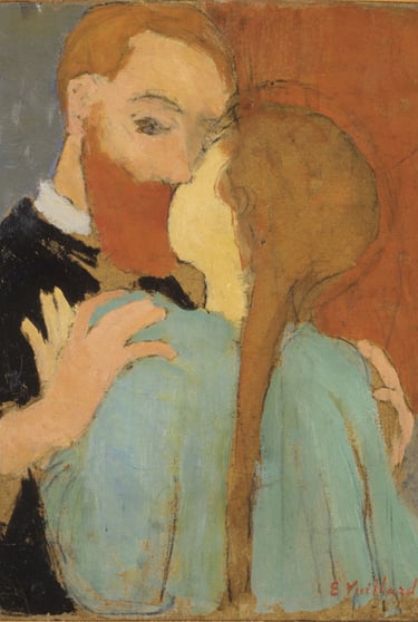 Édouard Vuillard est un peintre, décorateur et graveur français né le 11 novembre 1868 à Cuiseaux, en Saône-et-Loire, et mort en 1940 à La Baule. Il est l’un des membres majeurs du groupe des Nabis, un mouvement artistique de la fin du XIXᵉ siècle qui cherche à renouveler la peinture en s’éloignant du naturalisme et de l’impressionnisme. Proche de Paul Sérusier, Pierre Bonnard et Maurice Denis, Vuillard développe très tôt un style intimiste et décoratif.