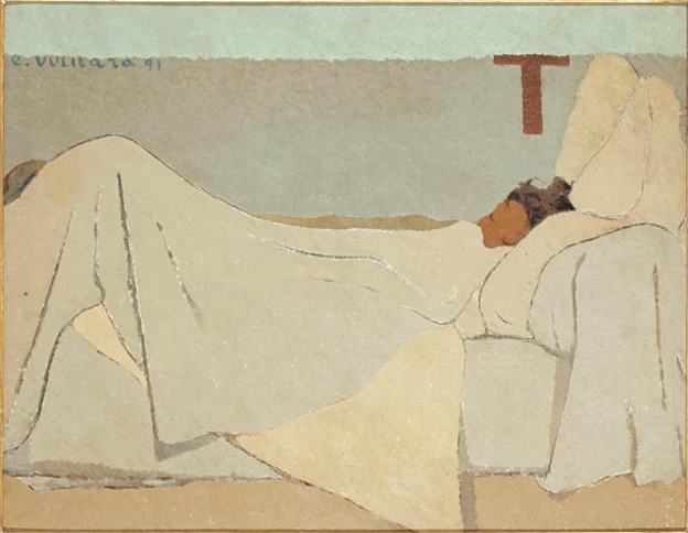 Son œuvre se distingue par la représentation de scènes de la vie quotidienne, souvent situées dans des intérieurs bourgeois : salons, chambres, ateliers, où apparaissent des figures familières, notamment sa mère. Les personnages semblent parfois se fondre dans le décor, grâce à l’usage de motifs répétitifs, de couleurs sourdes et de surfaces aplaties. Vuillard accorde une grande importance aux textiles, aux papiers peints et à l’atmosphère générale de ses compositions.