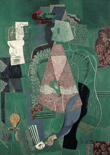 Avec Les Demoiselles d’Avignon (1907), Picasso opère une rupture décisive. Inspiré par l’art africain et ibérique, il fragmente les formes et remet en cause la perspective traditionnelle. Cette recherche conduit à la naissance du cubisme, développé avec Georges Braque. Dans le cubisme analytique, les objets sont décomposés en facettes multiples, offrant une vision simultanée de plusieurs points de vue. Le cubisme synthétique introduit ensuite des formes plus lisibles, des couleurs plus vives et l’usage du collage.