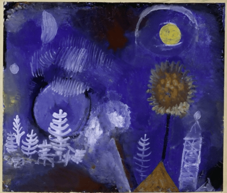 Enfin, la peinture de Klee entretient un lien étroit avec l’imaginaire, le rêve et l’inconscient. Ses œuvres évoquent des mondes poétiques, parfois étranges, peuplés de figures hybrides, de paysages cosmiques ou de cités mystérieuses. Cette liberté imaginative fait de Klee un artiste inclassable, dont l’œuvre invite le spectateur à une expérience sensible et méditative plutôt qu’à une lecture strictement rationnelle.