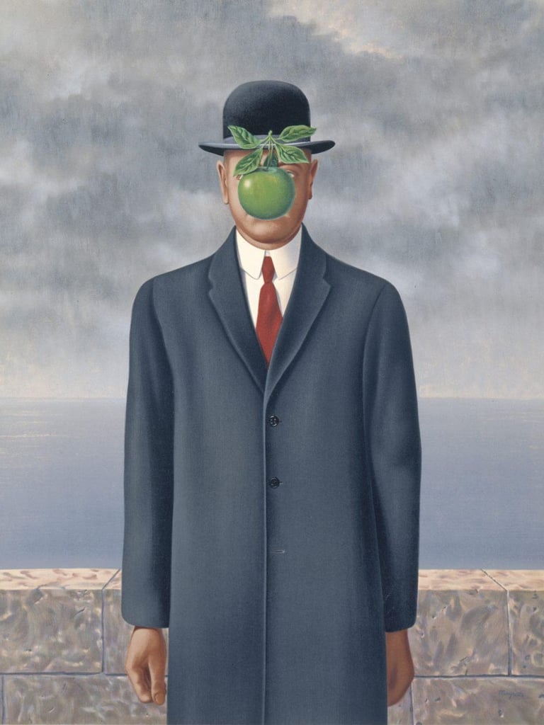 Magritte cherche moins à représenter l’inconscient qu’à déstabiliser la perception du spectateur. Ses œuvres mettent en scène des objets ordinaires — chapeaux melon, pipes, pommes, fenêtres — placés dans des contextes inattendus. Son tableau le plus célèbre, La Trahison des images (1929), portant l’inscription « Ceci n’est pas une pipe », illustre parfaitement sa réflexion sur la différence entre une chose et sa représentation.