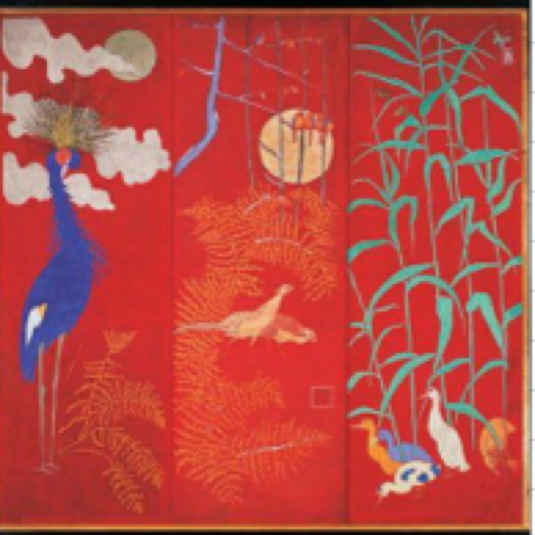Paravent à trois feuilles avec grue, canard, faisan